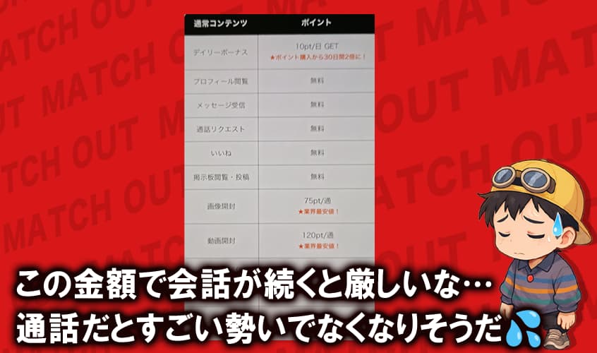 この価格帯だと、会話が盛り上がるほど課金が積み上がる仕組みだから、使い方によっては出費が一気に膨らむぞ。