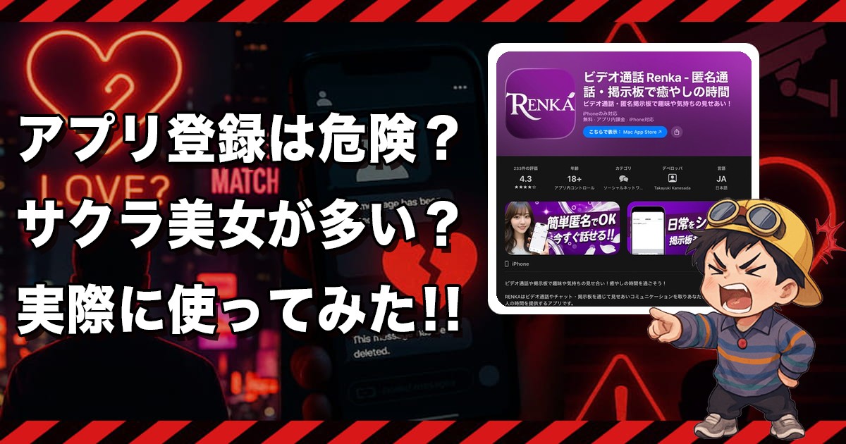 だからこそ今回は、俺が実際にRenka(レンカ)を入れて、登録から中身までガチで確認してきたぞ❗️