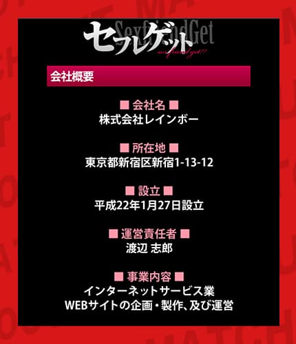 あと、セフレゲットは特定商取引法に基づく表記や各種届出番号の記載も見当たらない情報が多くて、ここはかなり気になったぞ❗️