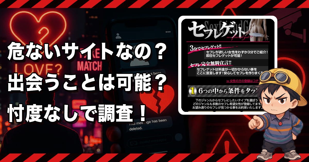 俺の検証では、セフレゲット単体で安全に出会える期待はかなり薄いと思ったぞ。