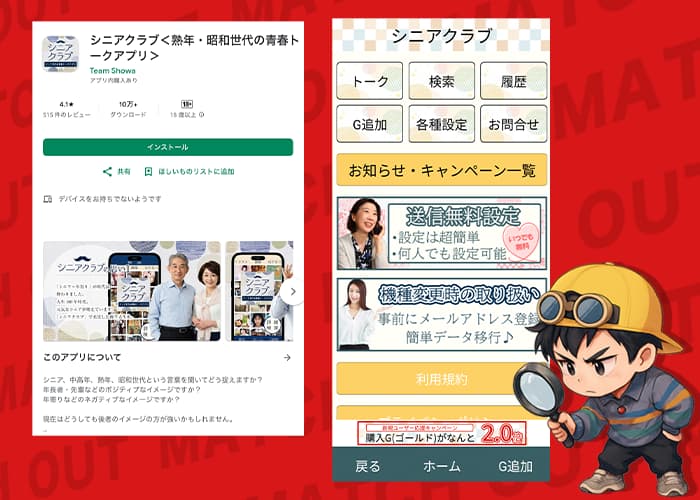 シニアクラブは、紹介ページだと「熟年・昭和世代の青春トークアプリ」みたいな立ち位置で書かれてたぞ。