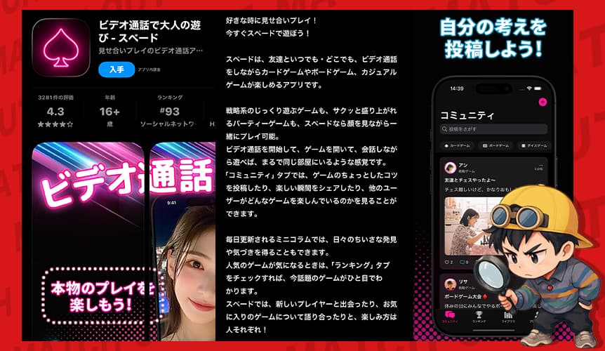ここから「スペード(SPADE)のビデオ通話アプリ」について、より詳しくシェアしていくぞ!