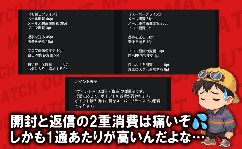 特に、画像の閲覧や送信にもポイントが必要な点は、課金がかさみやすい仕組みと言えるな。