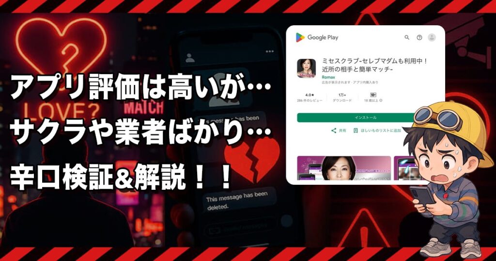 ミセスクラブは出会えない?サクラ疑惑と高額課金が危険な出会い系アプリを徹底検証