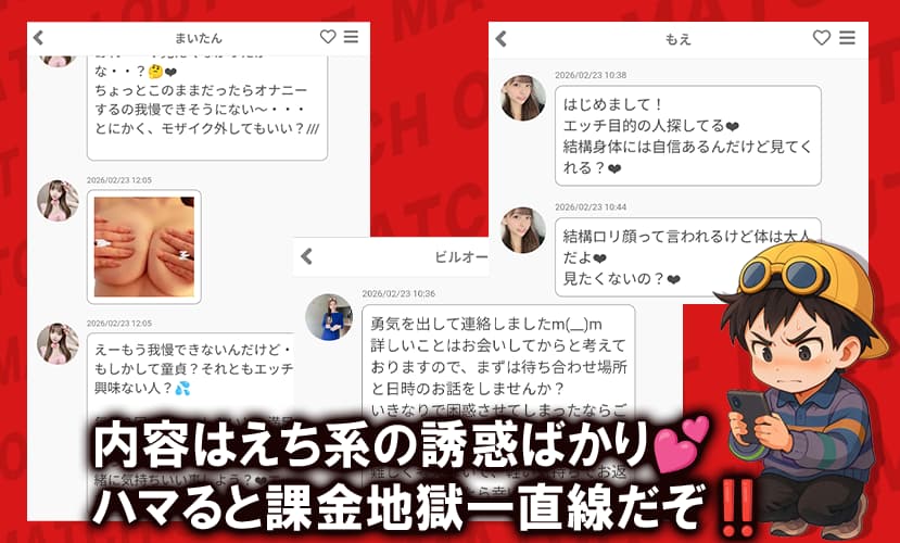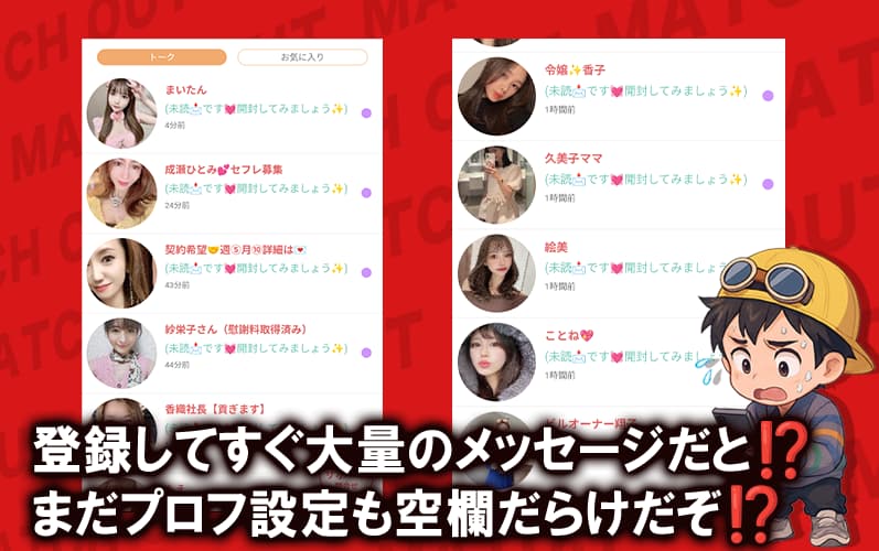 - 登録直後からサクラと疑われる大量メッセージが届く