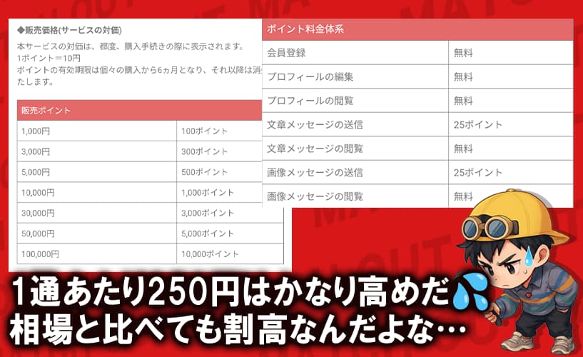 一般的な優良サービスなら、メッセージ1通50円前後が相場だから、この差はかなり大きい。