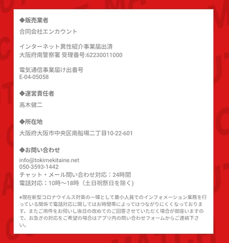 というわけで、ここではトキメキの特定商取引法表記や、各種届け出について、実際に確認した内容をまとめていくぞ。